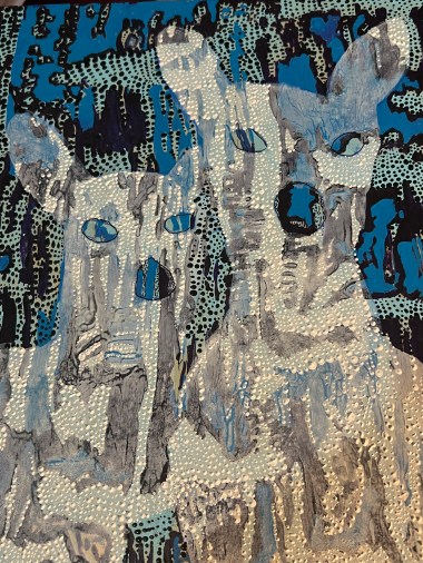 Kat Farrin is a local artist on Peaks Island, Maine, USA. These days sharing images via her observations of birds, plant life, and island landscapes on her daily walks and bike rides around the island. Often she makes paintings of the animals she sees on driftwood or rocks in an aboriginal dream time like way of pointilism . She participates in a weekly writing group and wrote a poem recently that I had the honor of being sent.